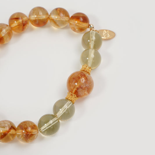 Golden Fortune - Orange Moonstone and Clear Quartz Bracelet