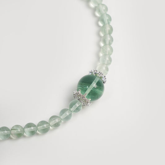 Tranquil Green Fluorite Double-Layer Bracelet | Rare Green Fluorite Paired with Clear Quartz for Elegance and Spirituality